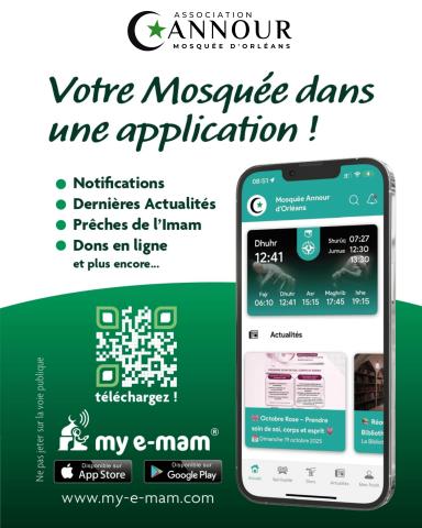 - Téléchargez l’application sur App Store ou Google Play Mosquée Annour d’Orléans